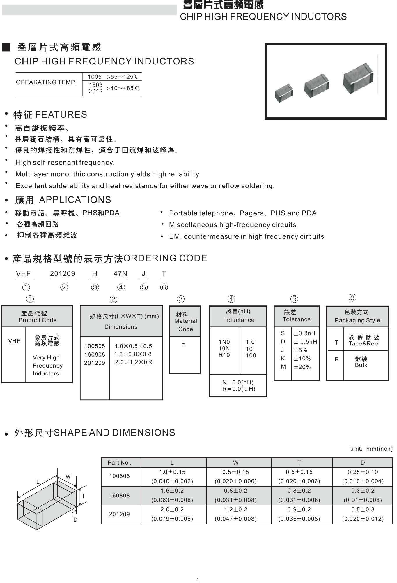 疊層片式高頻電感特性: